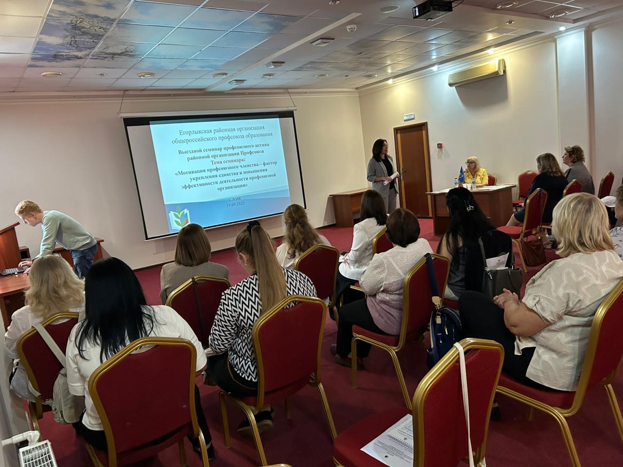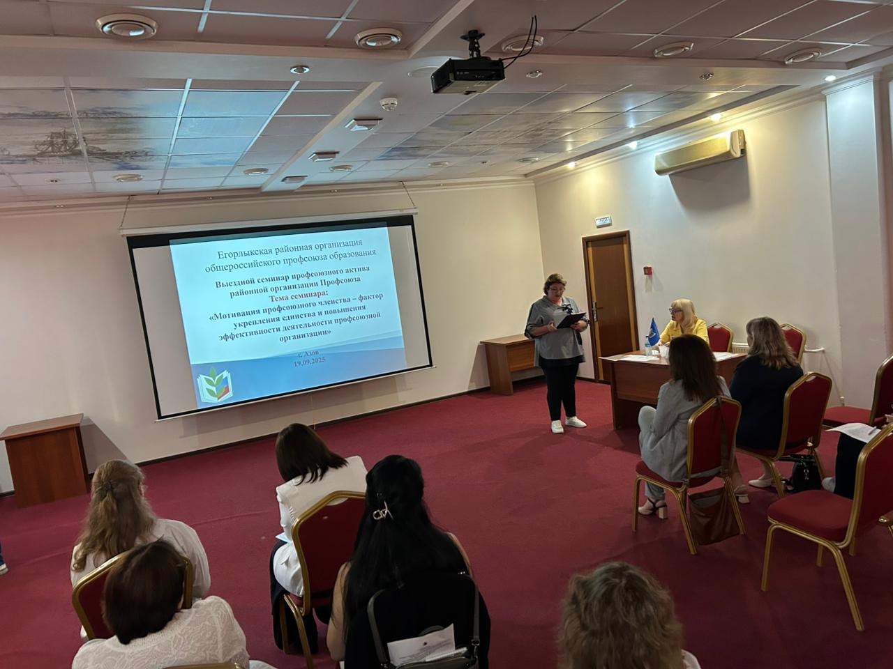 С 19 сентября по 20 сентября 2025 года в городе Азове на базе гостиницы «Амакс» состоялся выездной семинар профсоюзного актива Егорлыкской районной организации Общероссийского Профсоюза образования. Семинар был посвящен важной теме «Мотивация профсоюзного членства – фактор укрепления единства и повышения эффективности работы Профсоюза. Гостями семинара стали Елена Михиденко, председатель Азовской организации Общероссийского Профсоюза образования, члены профсоюзного актива Азовской профсоюзной организации. Открыла семинар председатель Егорлыкской районной профсоюзной организации Татьяна Чеботникова, обозначив приоритетные направления в деятельности профсоюзных организаций по мотивации профсоюзного членства. О работе Азовской городской организации Профсоюза, главных целях и задачах выступила Елена Михиденко, председатель Азовской городской профсоюзной организации . Опытом работы поделились Елена Кучкова председатель первичной профсоюзной организации МБОУ Егорлыкской СОШ №7 им. О. Казанского, Амаля Некрасова, председатель первичной профсоюзной организации МБОУ Шаумяновской СОШ№10., Татьяна Невиница, председатель первичной профсоюзной организации МБДОУ д/с «Аревик», Елена Ямпольская, внештатный технический инспектор труда Профсоюза Азовской городской организации.